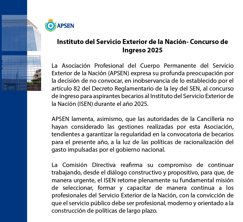 Instituto del Servicio Exterior – Concurso de Ingreso – Comunicación N° 50/2025 Sede Cancillería Esmeralda 1212, 1º Piso, Oficina 102,